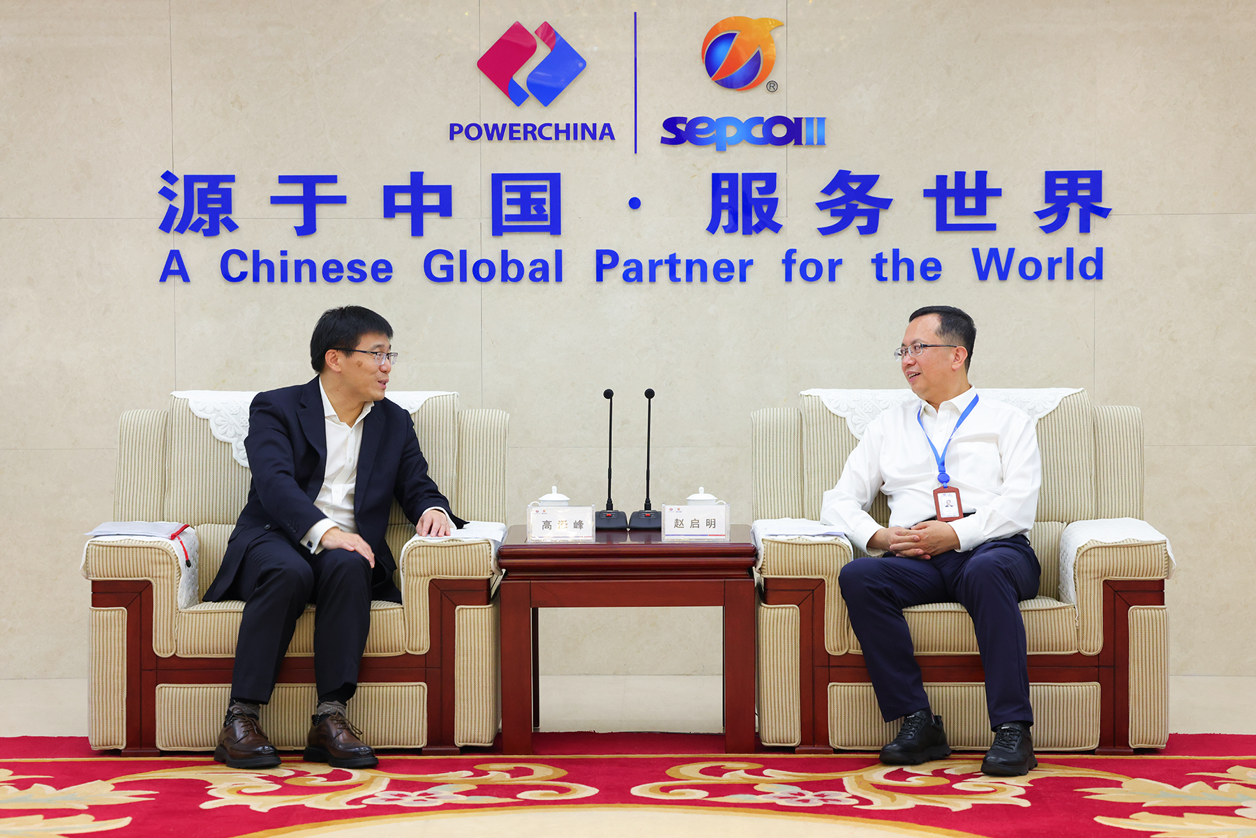 趙啟明與中國中原對外工程有限公司黨委書記、董事長王永革...